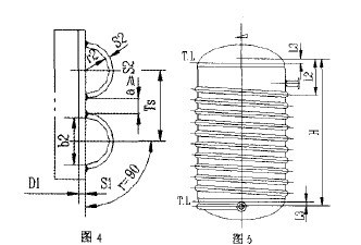 半圓管夾套可以采用單頭或雙頭螺旋結(jié)構(gòu)(見圖4),如果將半圓管夾套視為加強(qiáng)圈進(jìn)行計算時,必須滿足以下要求: