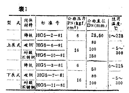 截止型放料閥是目前的4準(zhǔn)放料閥,1967年起編入化工部部頒標(biāo)準(zhǔn),它是直接安裝于反應(yīng)釜底部的專用放料閥門,其關(guān)閉件一一閥瓣是沿放料口通道中心線作上下移動的,按其開啟時的閥瓣運動方向不同,分為上展式和下展式二種,不論是上展式或下展式,在關(guān)閉狀態(tài)時,都能使閥瓣頂面與釜底面大致吻合,不存在沉積料液的死角。圖1為下展式放料閥的裝配簡圖,此類放料閥按化工部標(biāo)準(zhǔn),閥體可采用鑄鐵、鑄鋼和耐酸不銹鋼三種材質(zhì),其中耐酸不銹鋼放料閻按制造工藝又分成鑄造閥休和焊接閥體兩種形式。上述主要型式的標(biāo)準(zhǔn)號性能參數(shù)見表1。